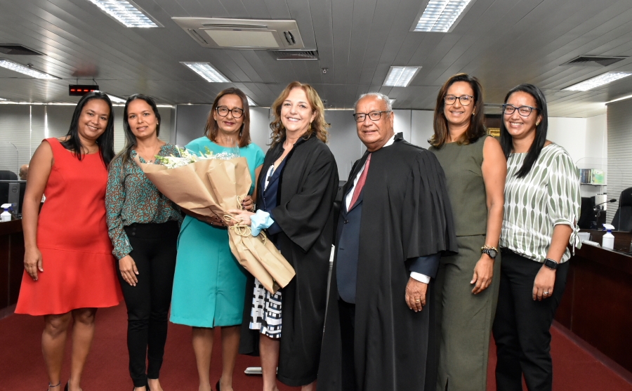 A placa foi entregue pela Juíza Auxiliar da Presidência, Maria da Conceição da Silva Santos. “Sua magistratura toda foi pontuada pela prudência”, completou a Juíza. Em seguida, a Desembargadora Ana Lúcia Freire dos Anjos, Vice-Presidente do TJSE, entregou flores ao magistrado. “Destaco sua delicadeza, quando diverge de forma tão elegante. É motivo de orgulho para nós termos o senhor como magistrado integrando nossa Corte e nossa Ejuse”, enalteceu a Desembargadora.